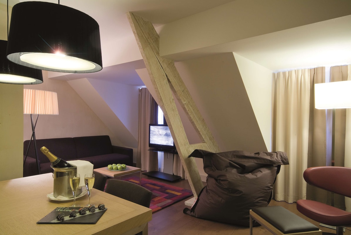 De zeer ruime Suites (ca 54 m²) hebben een apart woon- en slaapgedeelte en zijn voorzien van 1 tweepersoonsbed (kingsize), slaapbank, flatscreen televisie, wifi, bureau, zithoek, individueel regelbare klimaatbeheersing, minibar, kluisje, koffie- en theefaciliteiten, radio, verwarming en badkamer met bad/douche, toilet, wastafel, haardroger, badjassen, slippers en gratis toiletartikelen.