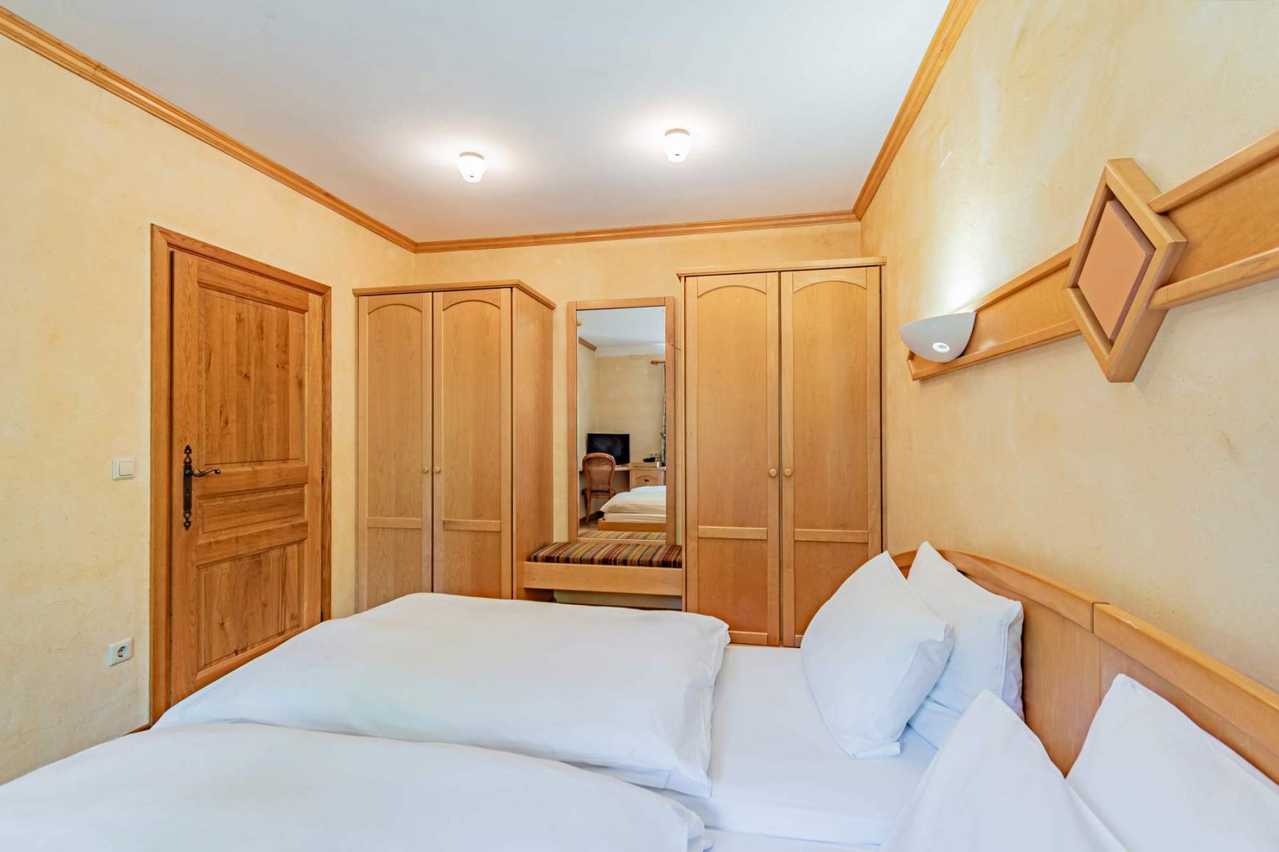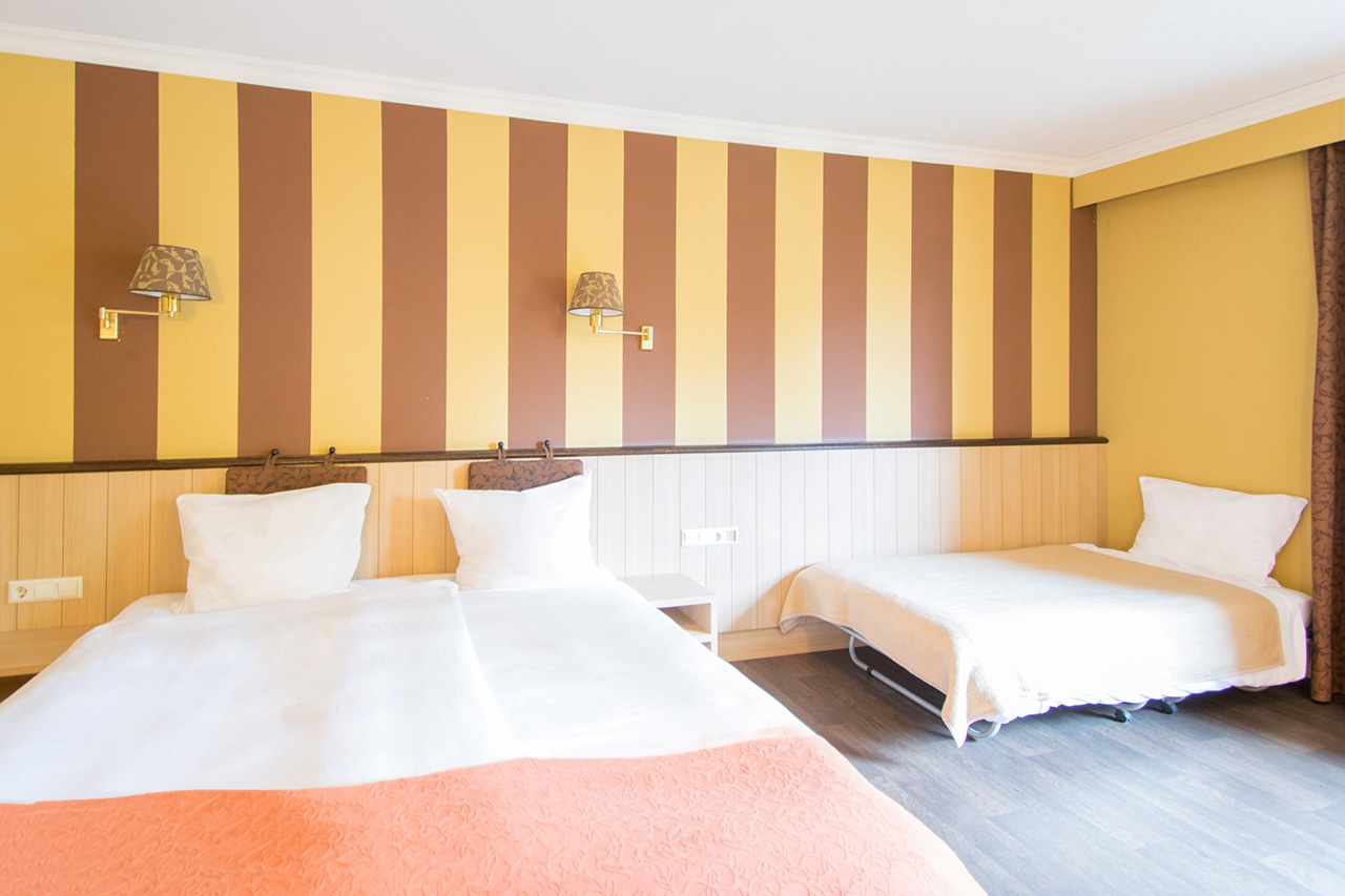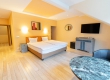 De zeer ruime Junior Suite Relax kamer (67 m²) is voorzien van 1 groot tweepersoonsbed, 2 eenpersoonsbedden in een aparte kamer, zithoek, flatscreen-tv, bureau, koffie- en theefaciliteiten, verwarming, koelkast en badkamer met groot bubbelbad, inloopdouche, toilet, wastafel, haardroger en gratis toiletartikelen.